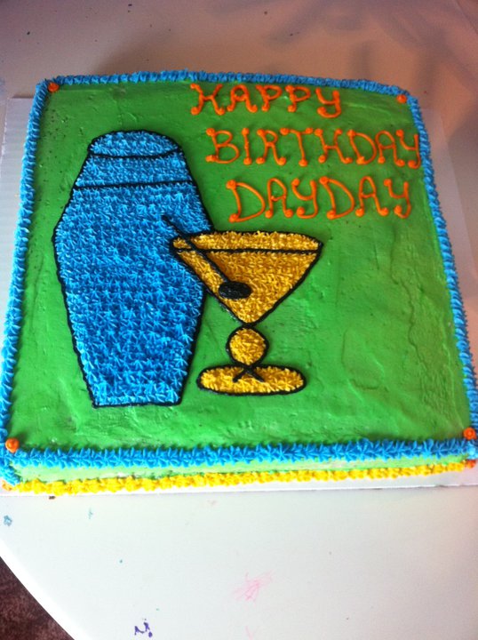 | Erika's husband has a side job as a bartender. I made him a martini shaker and glass. |